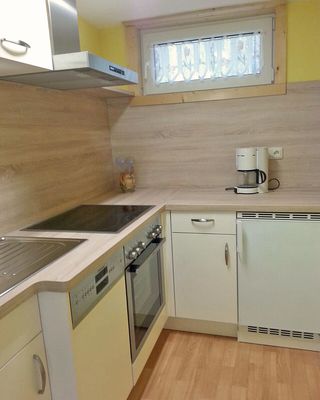 Es hat eine kleine Küche, ein Wohnzimmer mit ein Schlafzimmer, WC und Dusche.
