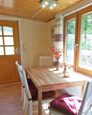 - Wohnzimmer mit Essecke und Fernseher